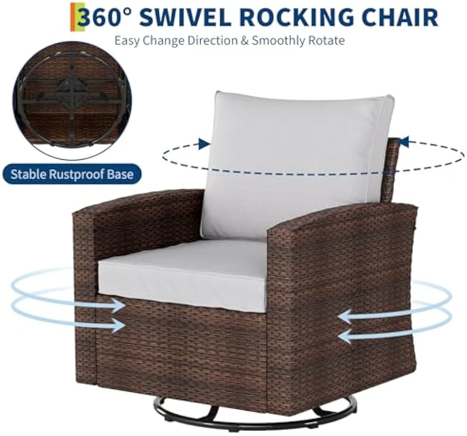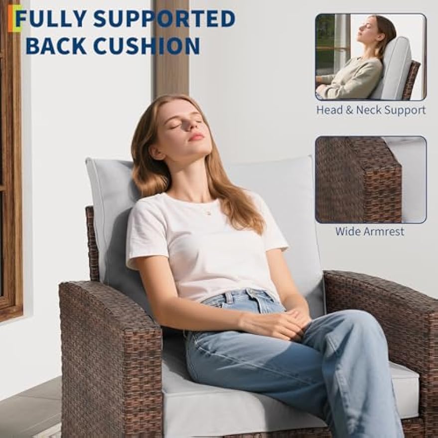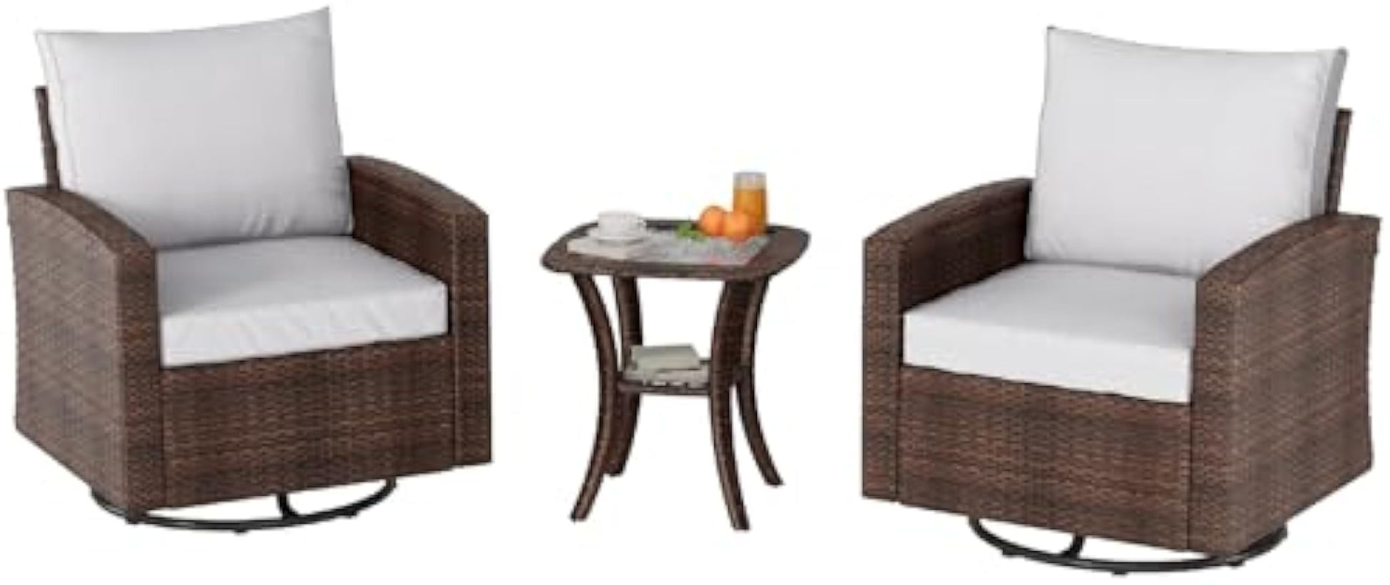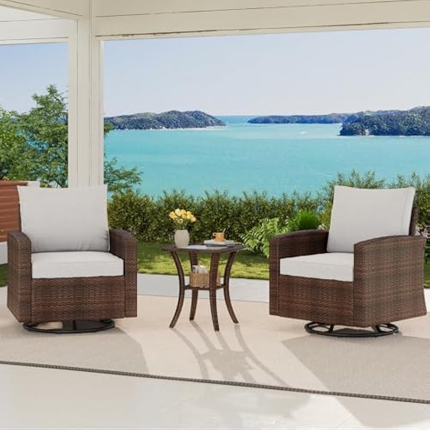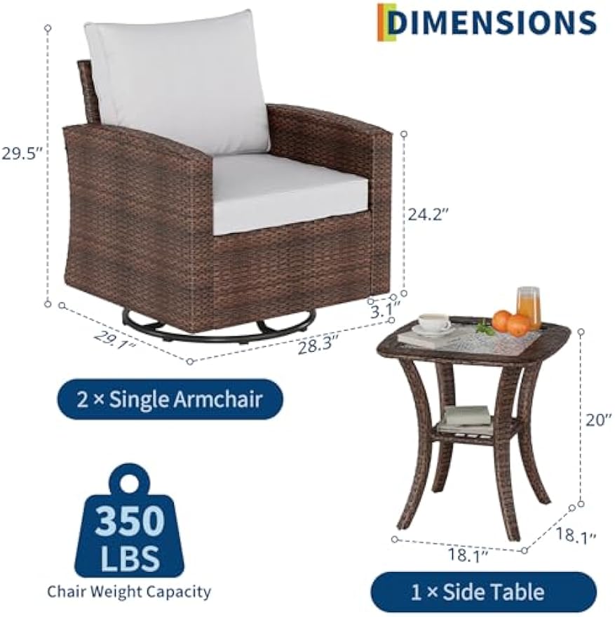 3 Piece Outdoor Swivel Rocking Chair Set with Side Table - Wicker Swivel Glider Rocker Chairs, High Back Comfy Outdoor Rocking Chairs, Patio Furniture Sets for Porch, Deck, Yard, Poolside