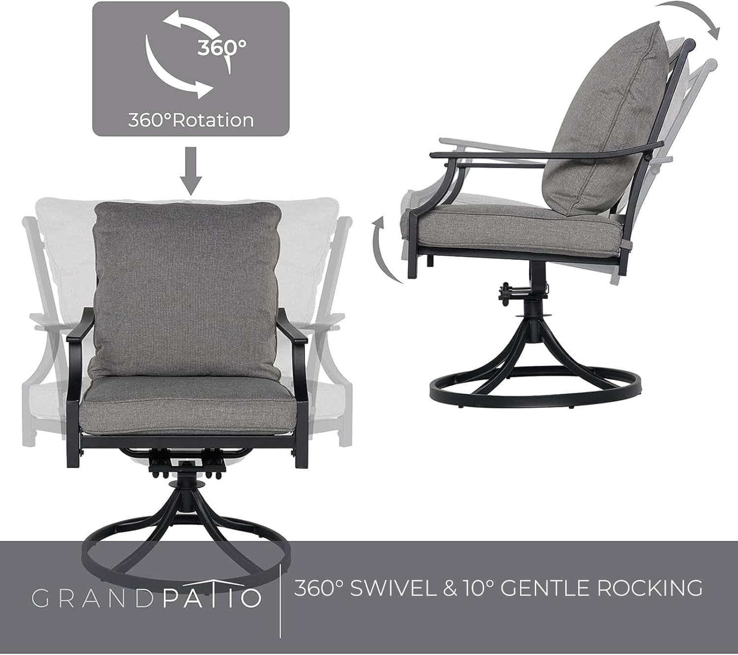 Grand patio Dining Chairs Set of 2,Outdoor Swivel Patio Dining Chairs Set of 2,Swivel Rocker Dining Chair,Outdoor Dining Chairs with Grey Cushions, Patio Chairs for Outside, Garden Lawn Porch