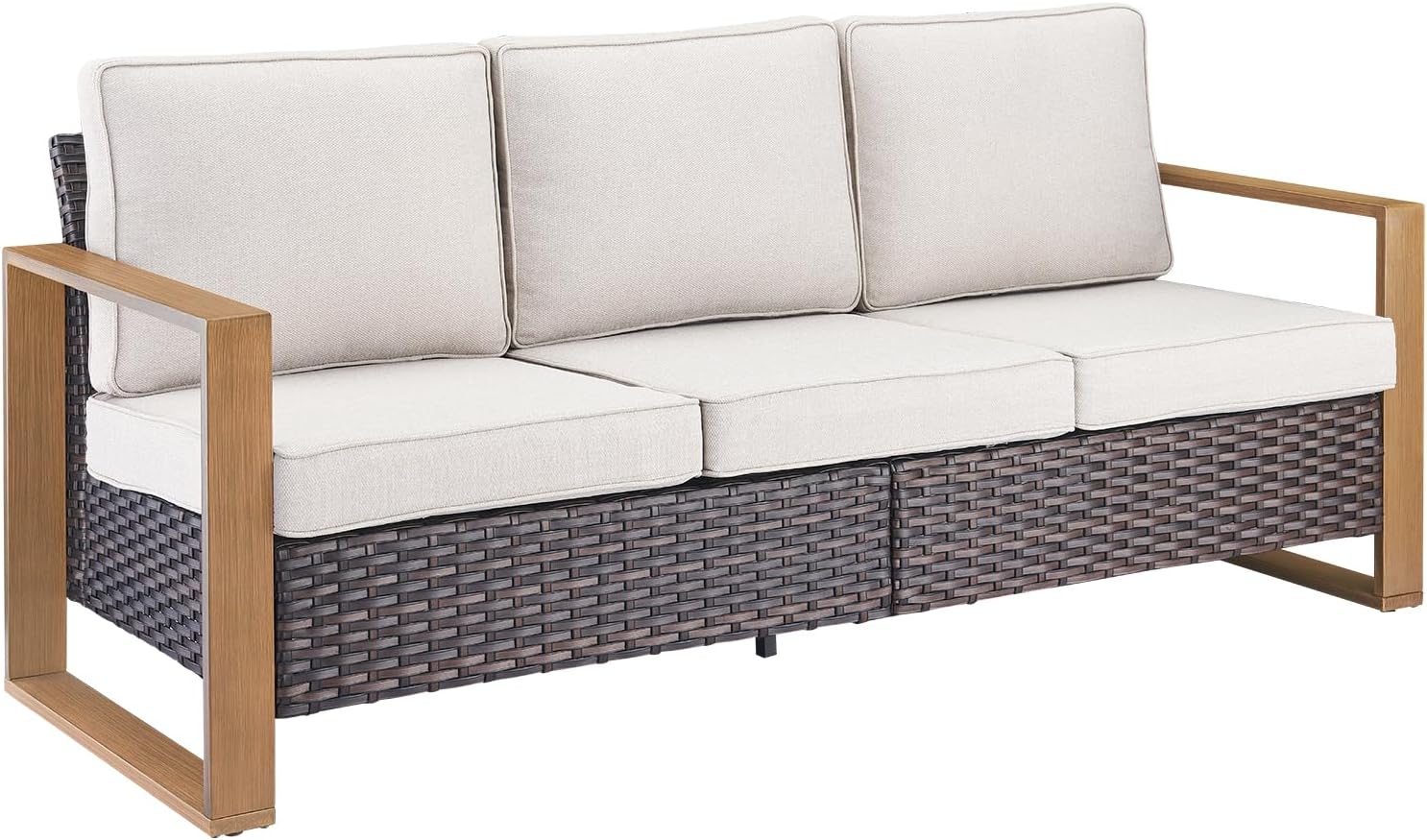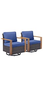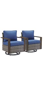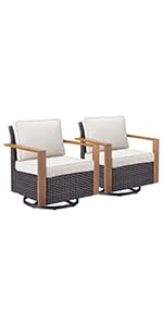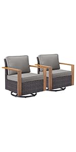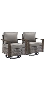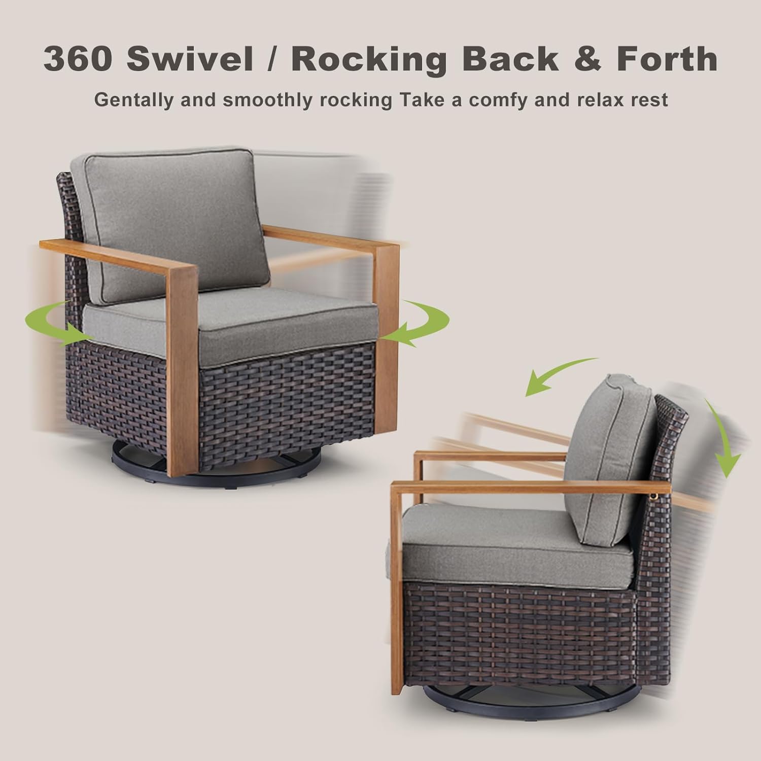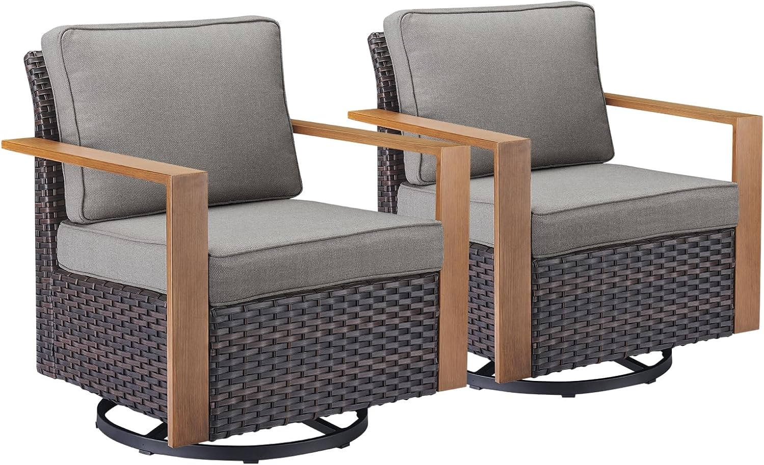 Outdoor Patio Swivel Rocker Chairs - Wicker Rattan Patio Swivel Rocking Chairs Set of 2 with Metal Wide Armrest, Thick Cushions and Deep Seating for Deck Porch Sunroom Garden(Brown/Grey)