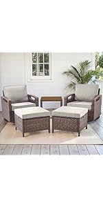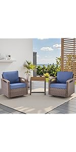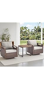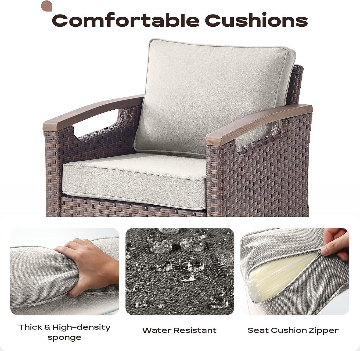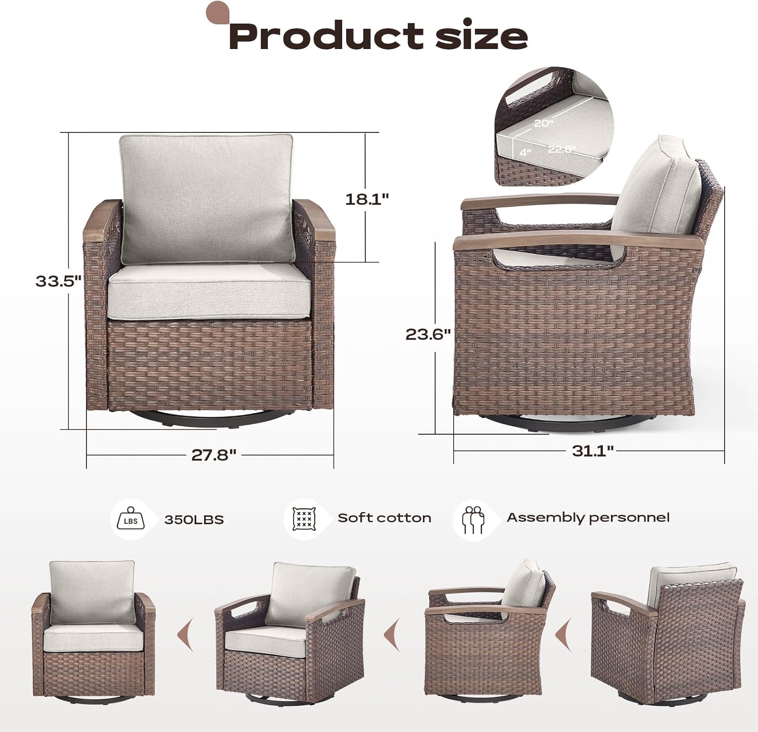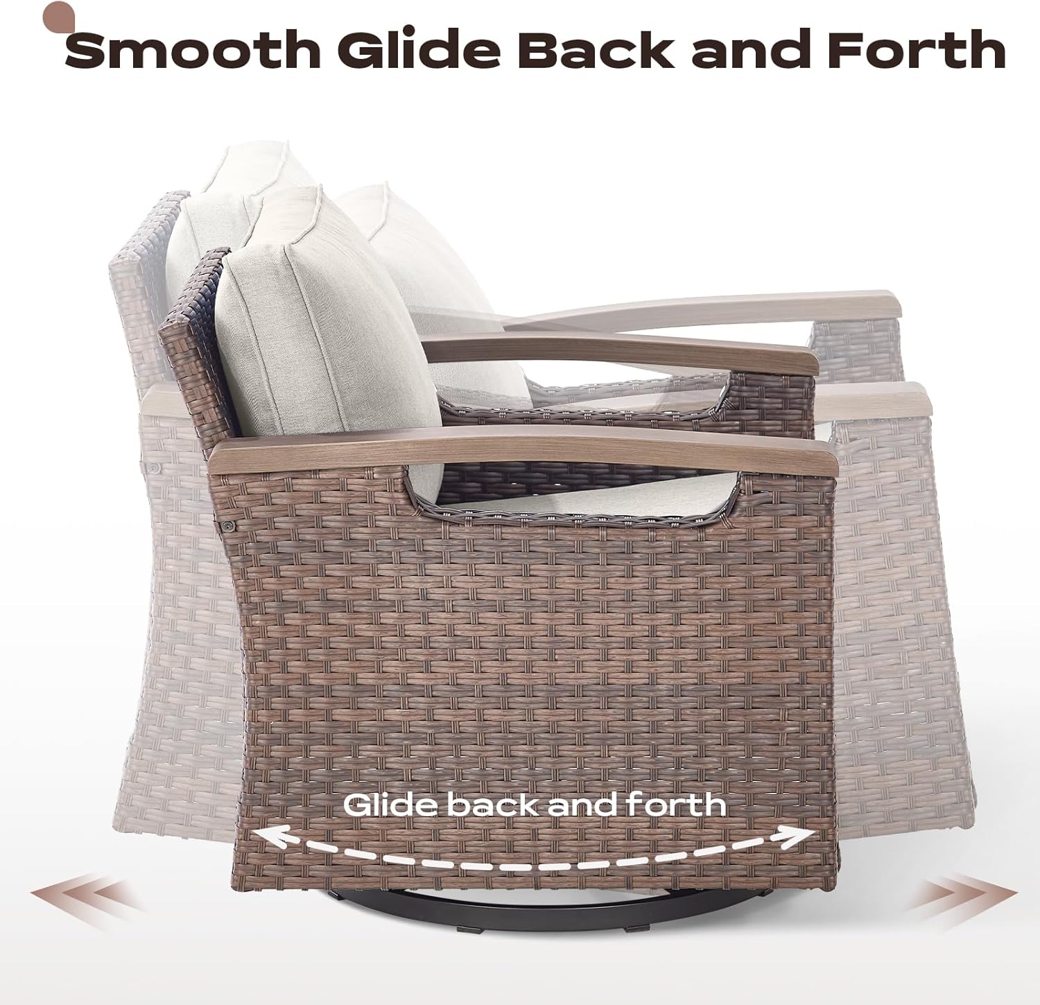 Outdoor Patio Swivel Rocking Chairs Set of 2, All Weather Wicker, Metal Armrest, Deep Seating, Thick Comfortable Cushions, Ideal for Deck Porch Backyard, Brown/Beige