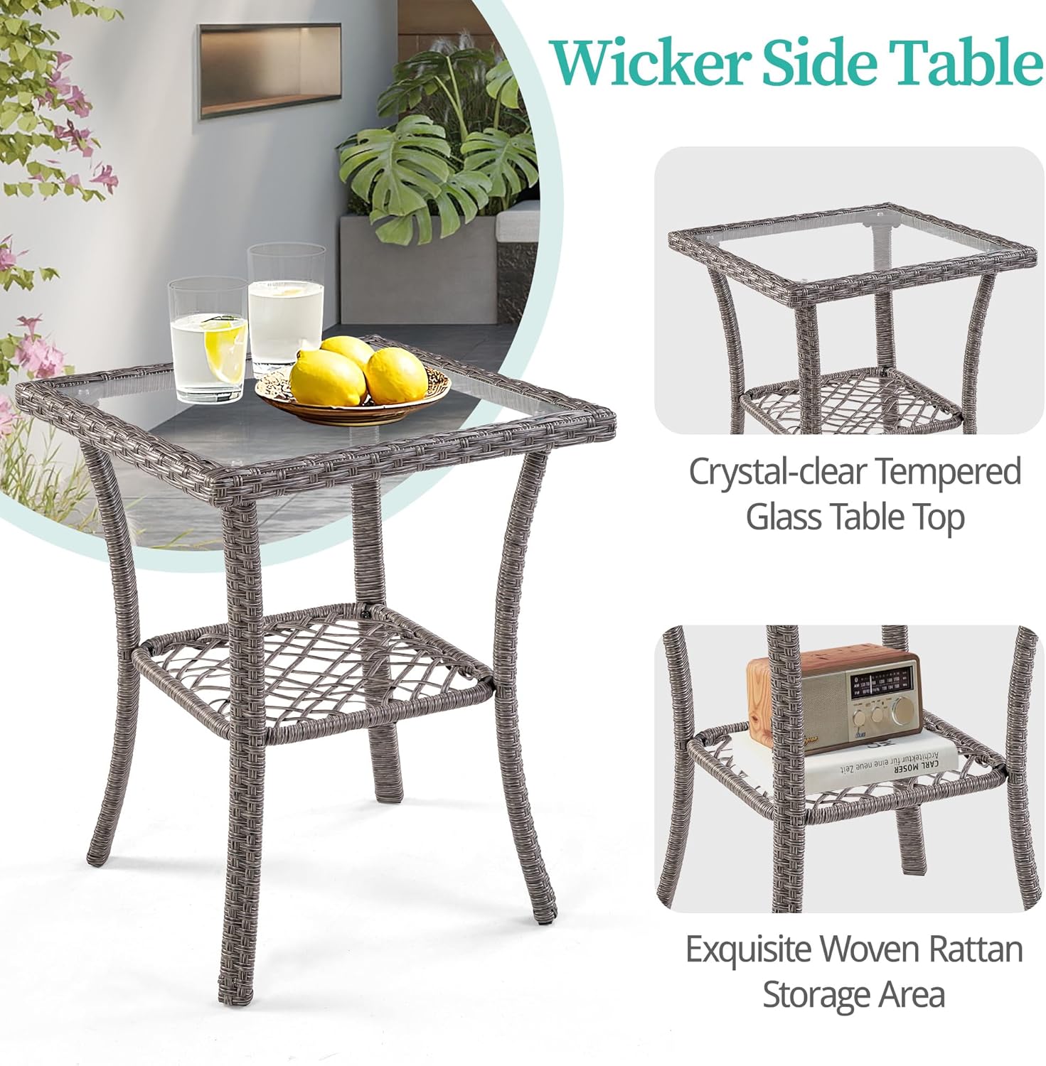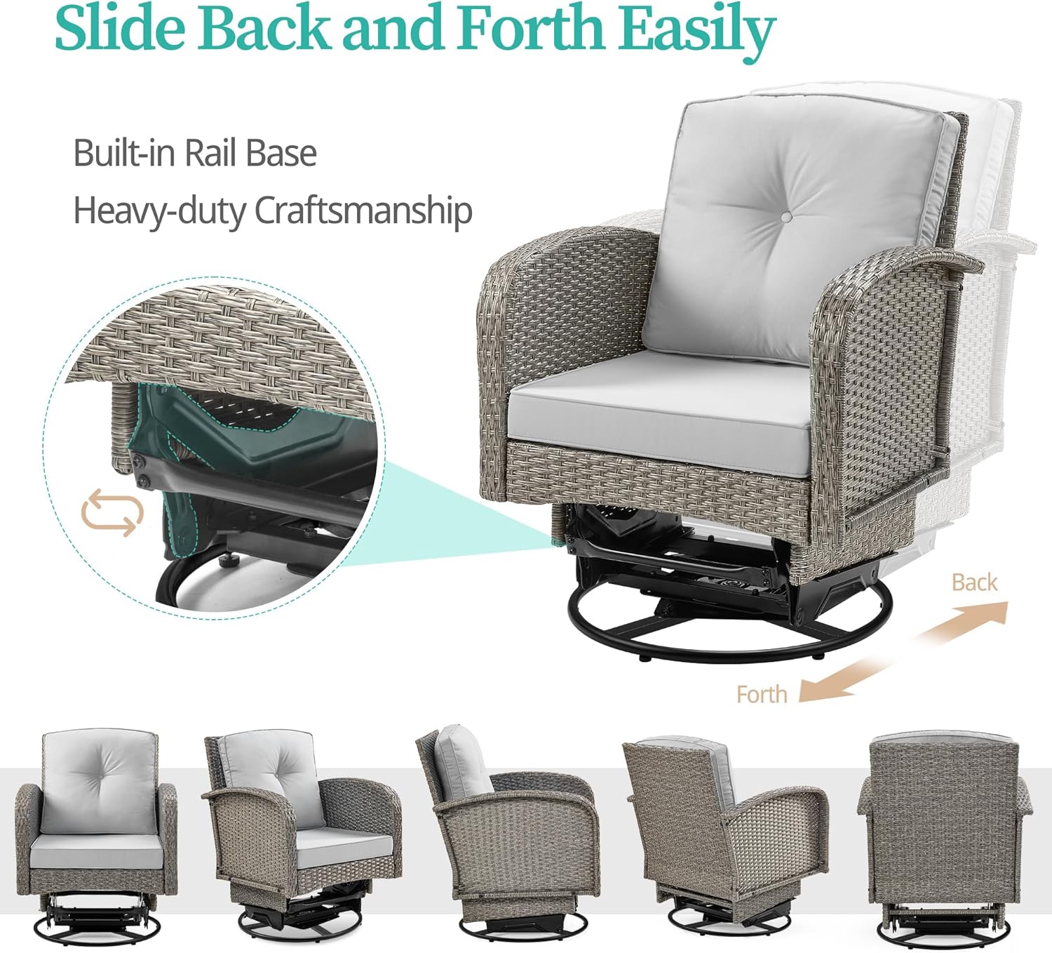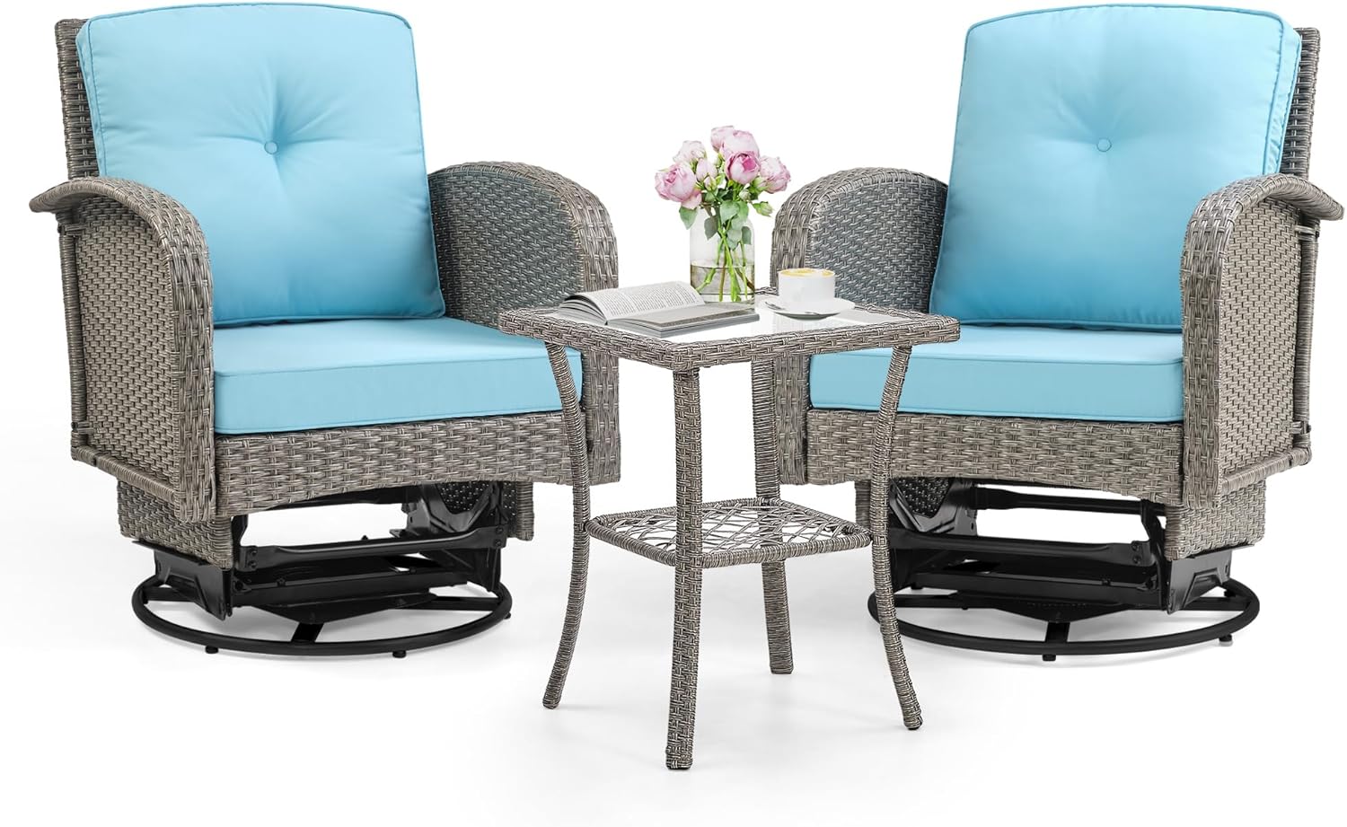 Outdoor Swivel Rocker Chairs Set, 3 Piece Patio Swivel Chairs Furniture Set, All-Weather Wicker Bistro Set, Washable Cushions, Ideal for Porch, Deck, Balcony, Backyard (LightGray)