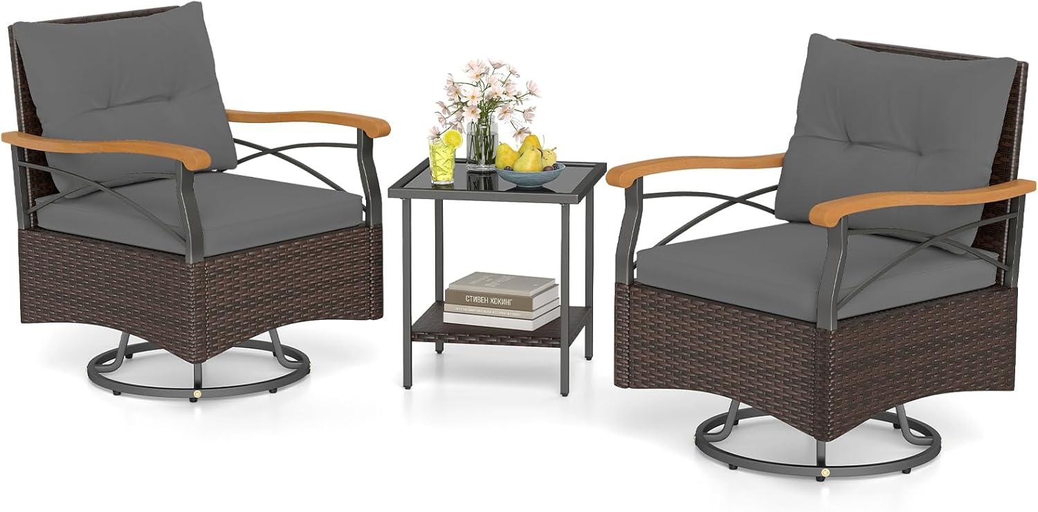 Upgrade your outdoor relaxing space with this 3-piece patio swivel rocker set, designed to combine comfort with style.